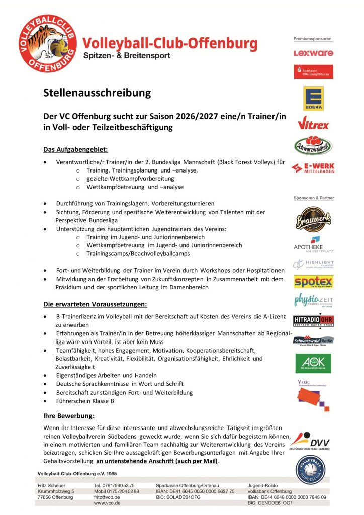 Wir bieten die Chance, im größten reinen Volleyballverein Südbadens gemeinsam mit einem engagierten und familiären Team die Zukunft unseres Sports zu gestalten.